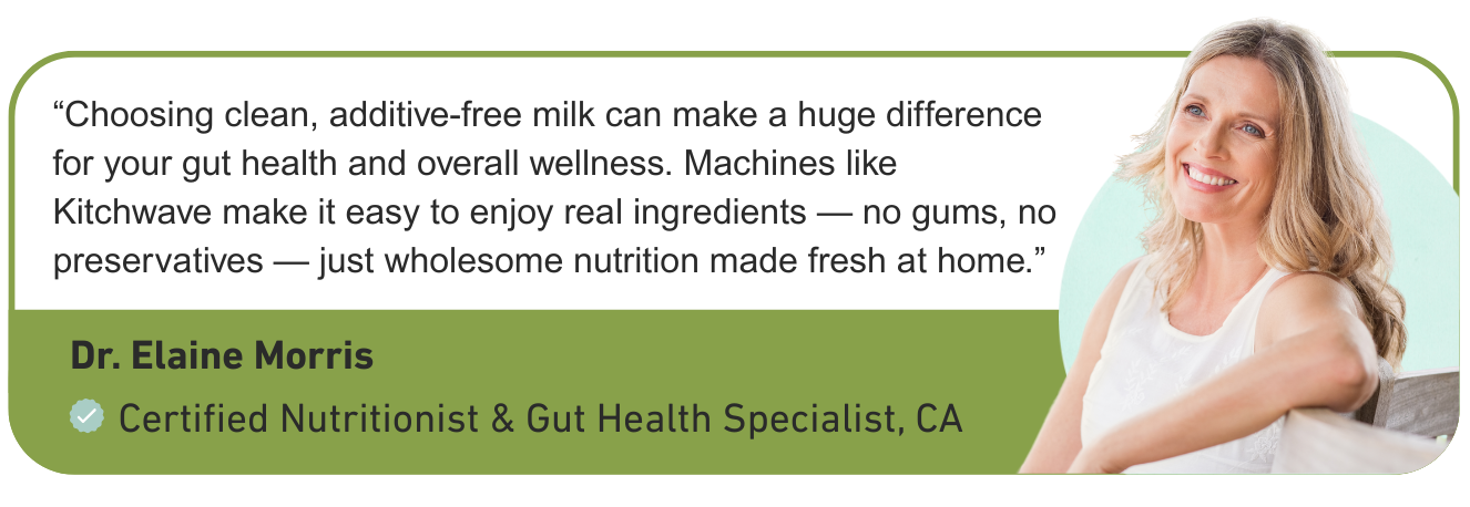 Kitchwave™ gives you total ingredient control — real nuts, water, and nothing else — and costs a fraction of store brands (≈ $0.40 per serving).